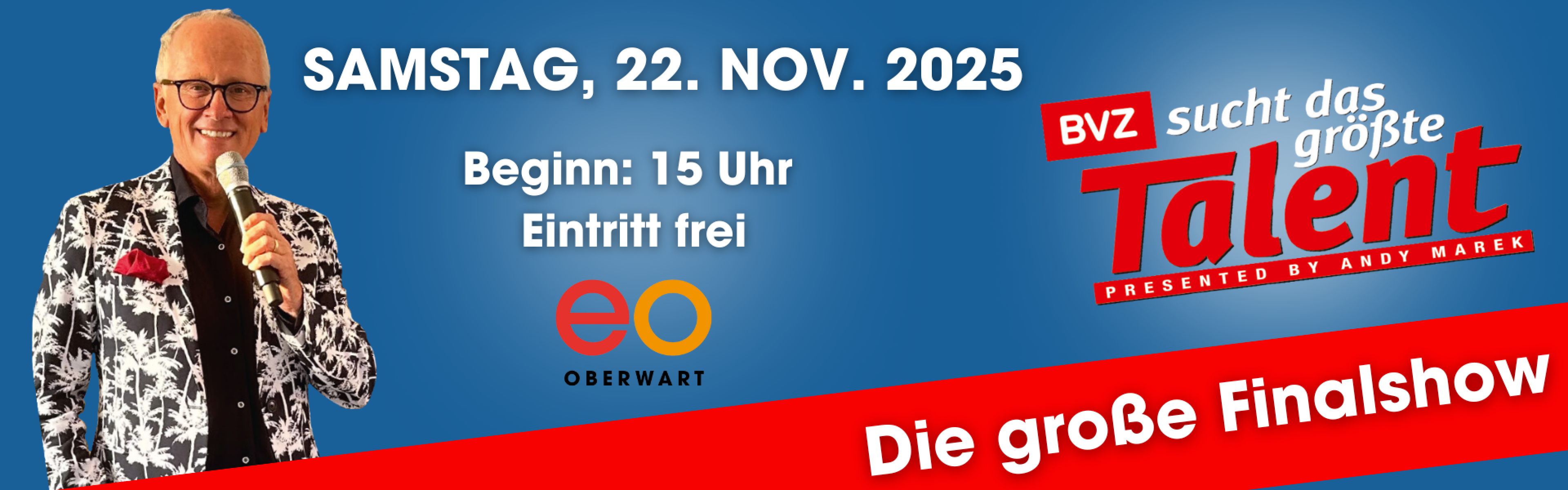 Das große Finale der BVZ Talentshow findet am 22. November ab 15 Uhr wieder im eo statt. Moderiert wird die Talentshow von Andy Marek.