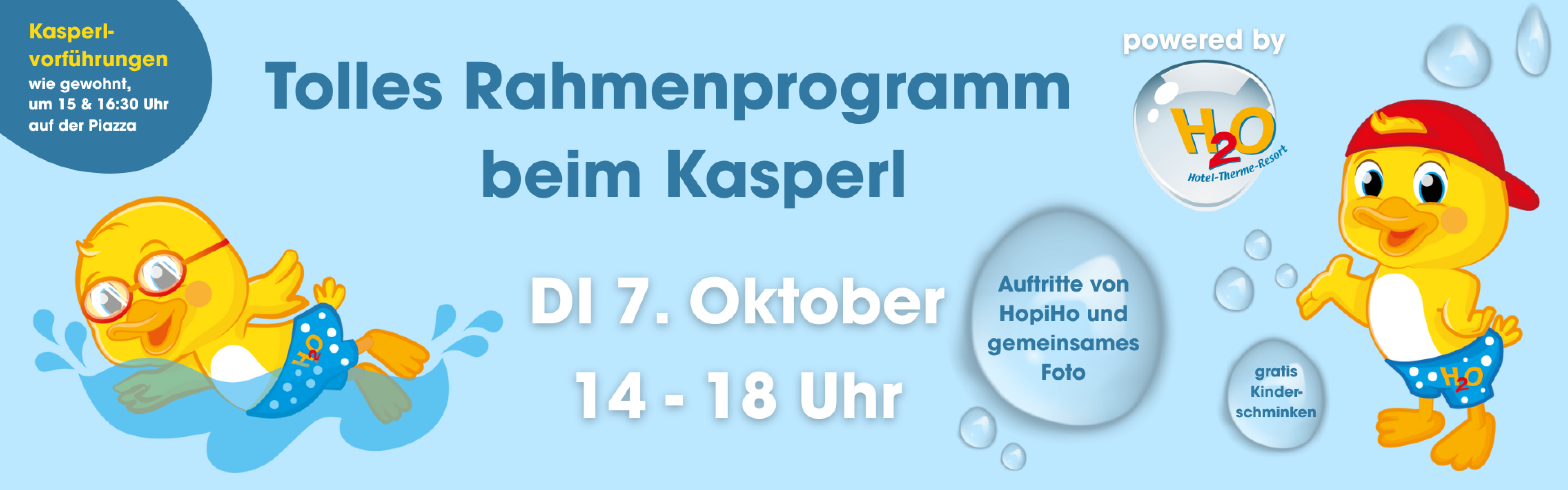 Bei den beiden Kasperlvorführungen am Dienstag, dem 7. Oktober, erwartet die Kinder zusätzliches Unterhaltungsprogramm mit der H2O Therme.