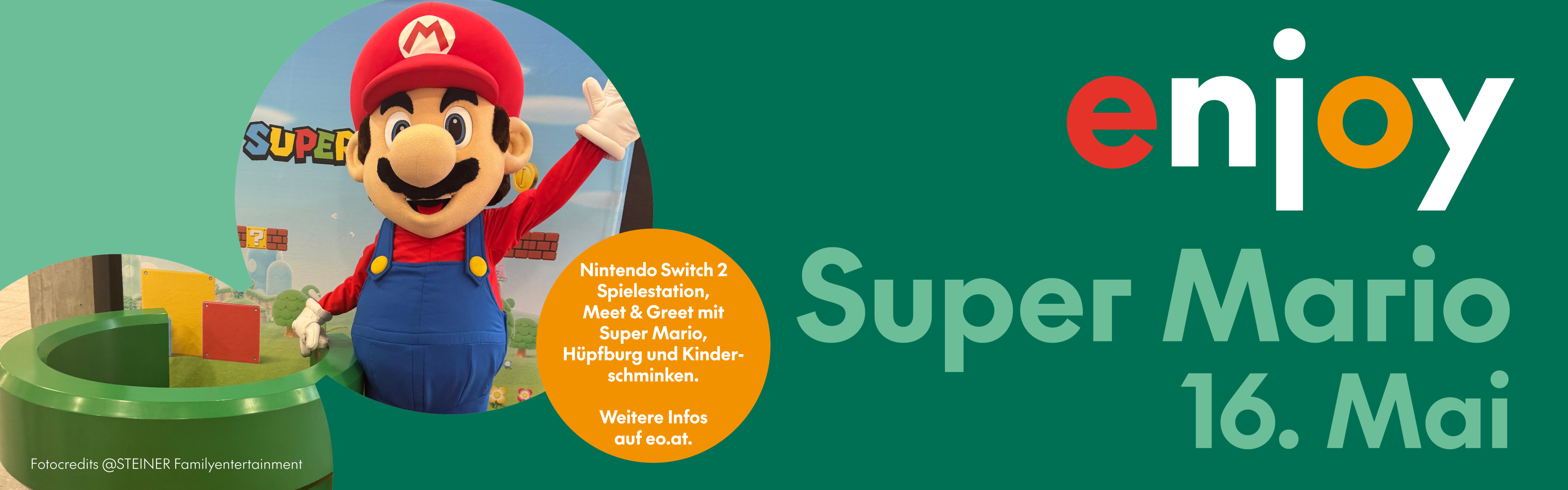 Am Samstag, dem 16. Mai, ist Special Guest SUPER MARIO zu Besuch und bringt eine coole Super Mario Hüpfburg mit, die alle Kinder kostenlos benutzen können.